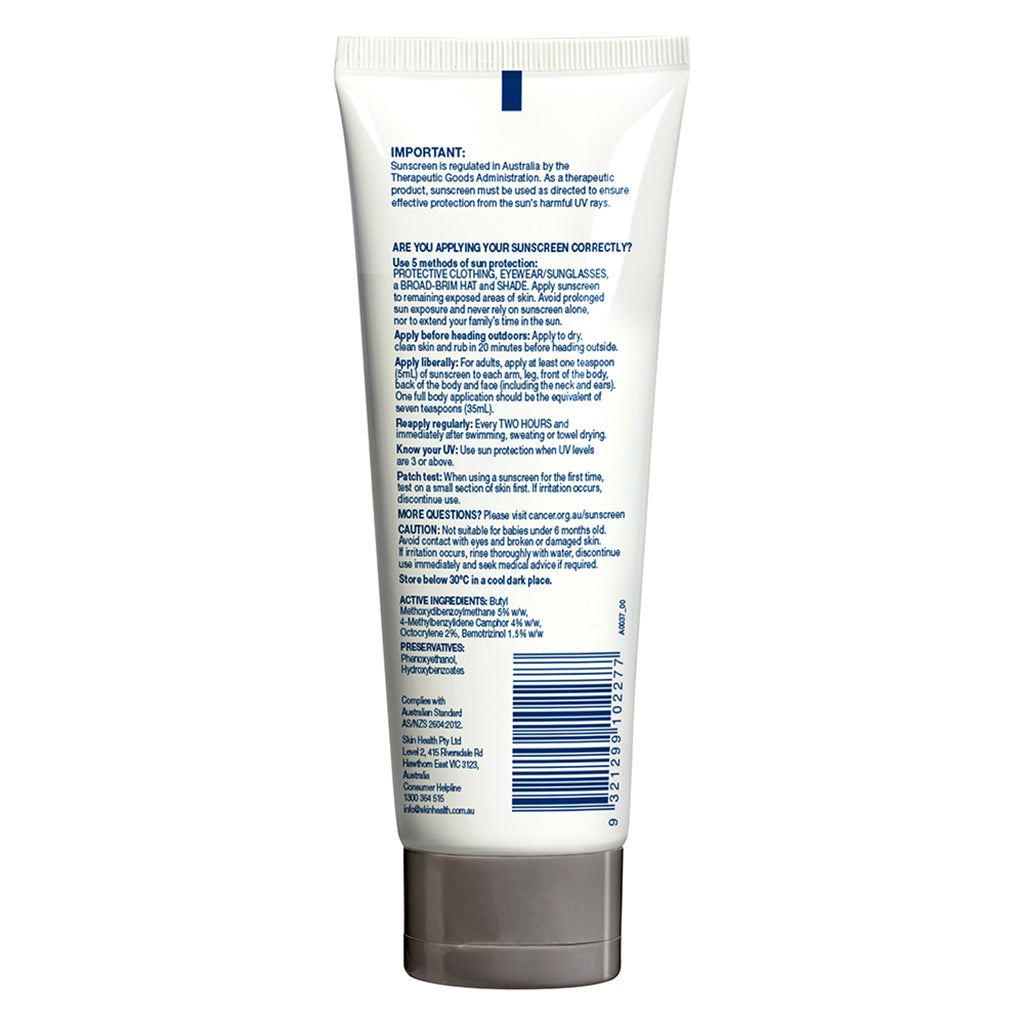 Apply to dry, clean skin and rub in 20 minutes before heading outside. On an average sized adult, approximately 35mL should be applied. This is the equivalent of 1 teaspoon of sunscreen to each arm, leg, front of body, back of body and face (including neck and ears).